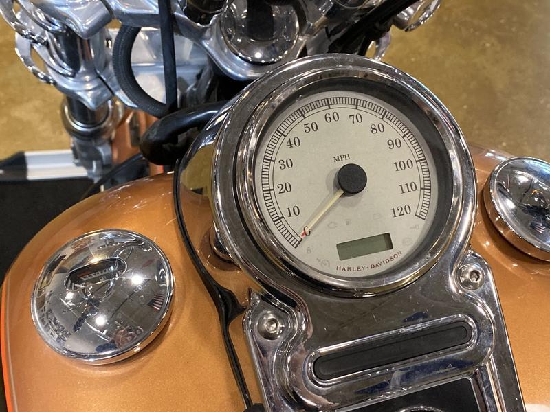 - Electronic speedometer w/ odometer, handlebar-mounted; Time-of-day clock on odometer; Resettable tripmeter; low fuel indicator light; low oil pressure indicator light; engine diagnostic readout; LED lights; 6-speed indicator light