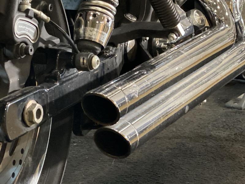 - Chrome, staggered shorty exhaust w/ dual mufflers