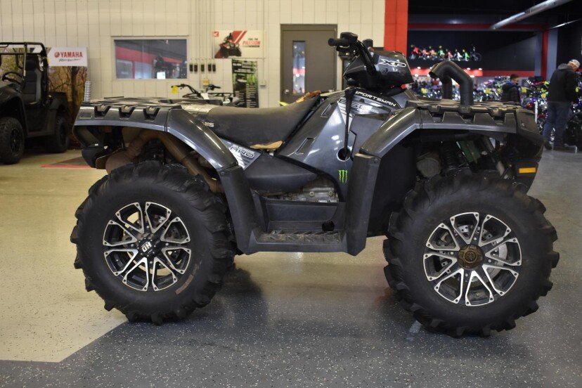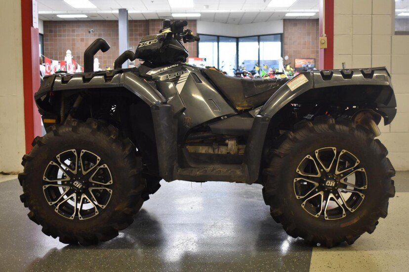 Engine Type: 4-Stroke SOHC Twin Cylinder Displacement: 850cc High Output (H.O.) Cylinders: Twin Engine Cooling: Liquid Fuel System: Electronic Fuel Injected Front Suspension: Dual A-Arm Front Travel: 9 in. (22.9 cm) Front Brake Type: Single Lever 4-Wheel Hydraulic Disc with Hydraulic Rear Foot Brake Front Tires: 26 x 8-14; 489 II Rear Travel: 10.25 in. (26 cm) Rear Suspension: Dual A-Arm, Rolled Rear Brake Type: Single Lever 4-Wheel Hydraulic Disc with Hydraulic Rear Foot Brake Rear Tires: 26 x 10-14; 489 II Dry Weight: 773 lb. (351.4 kg) Front Rack Capacity: 120 lb. (55 kg) Rear Rack Capacity: 240 lb. (110 kg) Towing Capacity: 1,500 lb. (680.4 kg) Fuel Capacity: 5.25 gal. (19.9 L) Ground Clearance: 11.5 in. (29.2 cm) Machine Dimensions (LxWxH): 83.25 x 47.6 x 50.75 in. (211.4 x 120.9 x 128.9 cm) Wheelbase: 53 in. (134.6 cm) Drive Train: On-Demand True AWD/2WD Final Drive: Shaft Transmission: Automatic PVT P/R/N/L/H Speedometer: Standard: Digital Tachometer: Standard: Digital Odometer: Standard: Digital Lighting: Triple 50w High Beam, Dual 50w Low Beam Headlights; Dual Brakelights/Taillights Colors: Sunset Red, Magnetic Metallic