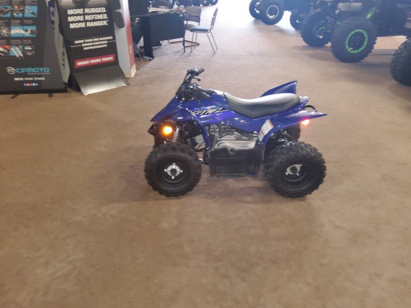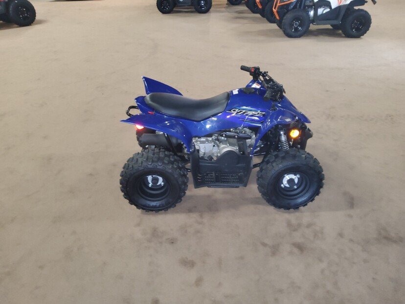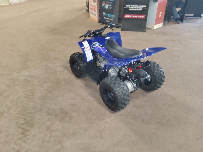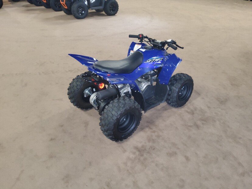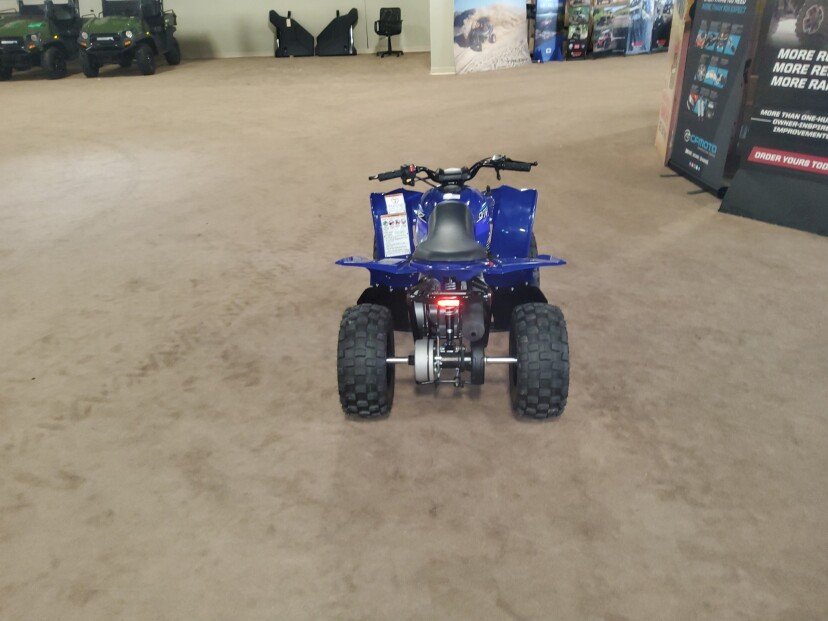 Engine Type: SOHC 4-stroke; 2 valves Displacement: 49cc Bore x Stroke: 39.0mm x 41.4mm Engine Cooling: Air Fuel System: Carburetor Front Suspension: Single I-arm Front Travel: 2.4 in. Front Brake Type: Dual drum Front Tires: AT16 x 6.5-7 Rear Suspension: Single shock swingarm Rear Travel: 2.0 in. Rear Brake Type: Drum Rear Tires: AT16 x 7-7 Dry Weight: Curb Weight: 220 lb. Fuel Capacity: 1.5 gal. Ground Clearance: 3.5 in. Machine Dimensions (LxWxH): 49.2 in. x 32.3 in. x 30.3 in. Wheelbase: 32.7 in. Final Drive: Chain Transmission: CVT Colors: Team Yamaha Blue, White
