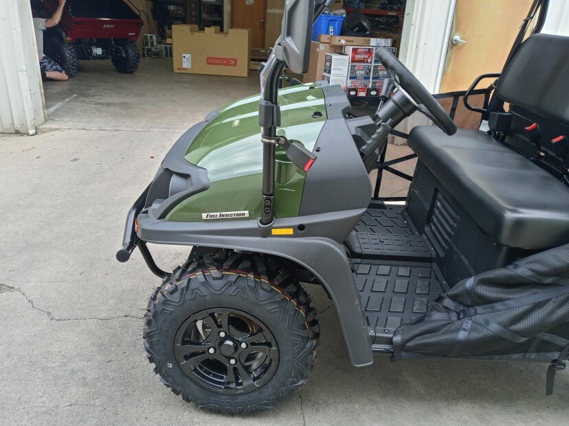 Engine Type: Single Cylinder, 4 Stroke Displacement: 177.3 cc Cooling: Air Compression Ratio: 8.8 : 1 Fuel System: EFI Front Suspension: Macpherson Strut Front Brakes: Dual Disc Front Tire: 24×8 – 12 Off-road Tire Rear Suspension: Dual A-arm Rear Brakes: Disc Rear Tire: 24×8 – 12 Off-road Tire Dry Weight: 911 lb. Wheelbase: 63.7 in. Ground Clearance: 10.2 in. Fuel Capacity: 4.80 gal. Towing Capacity: 450 lb. Transmission: Automatic w/ CVT (L-H-N-R) Drive System: Rear Shaft Drive w/ Rear Differential Colors: Red, Blue, Green
