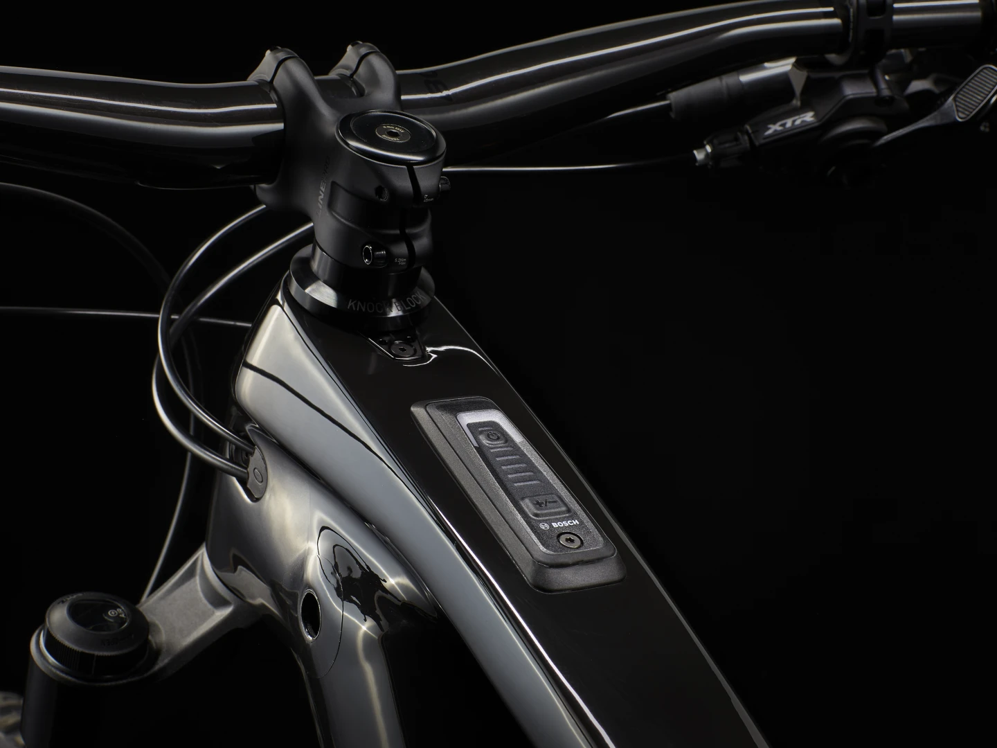 An upgraded OCLV Mountain Carbon frame with longer reach and oversized head tube and seat tube for maximum strength. An extra-long-range 750Wh battery, ultra-adjustable RockShox ZEB Ultimate fork, RockShox Super Deluxe Ultimate Thru Shaft shock, and ultra-responsive Shimano XTR 1×12 drivetrain. Bosch’s new limited-edition Performance Line CXR motor with faster acceleration and extended boost, a new Mini Remote, and Bluetooth® System Controller display that’s integrated into the top tube.
