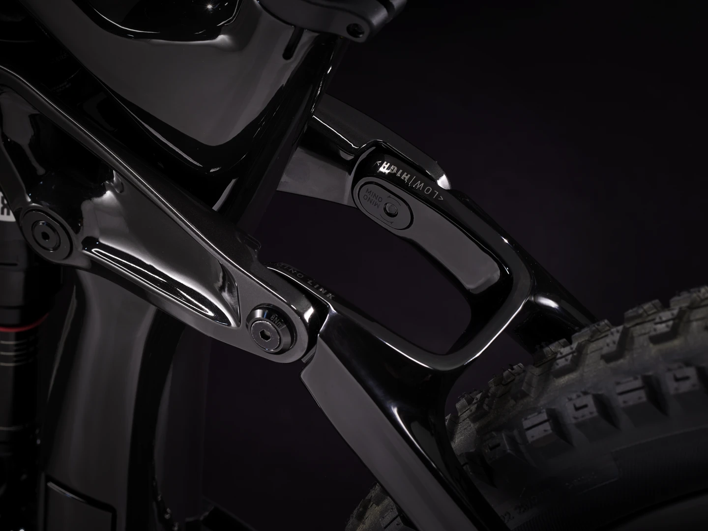 Fine tune head tube angle by 1/2° and BB height by up to 10mm with the simple turn of a nut. Just flip the link to choose between slack or slacker geometry, without negatively affecting suspension performance. A Trek exclusive.