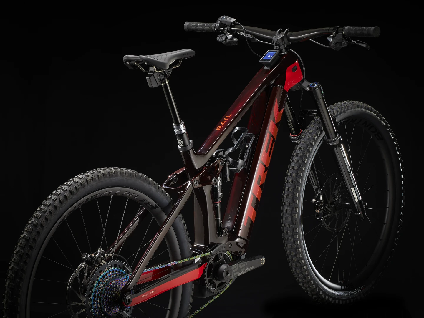 Rail 9.9 is all about top-shelf tech. RockShox’s best enduro fork, Bosch’s biggest battery, the smooth shifting of XX1 AXS, an updated frame, TyreWiz and AirWiz pressure monitoring, plus Bosch’s latest tech with smart system.
