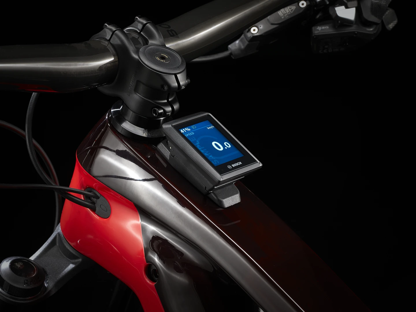 An upgraded OCLV Mountain Carbon frame with longer reach and oversized head tube and seat tube for maximum strength. An extra-long-range 750Wh battery, ultra-adjustable RockShox ZEB Ultimate fork, RockShox Super Deluxe Ultimate Thru Shaft shock, and SRAM XX1 AXS drivetrain. You get Bosch’s new smart system Performance Line CX with a new Bluetooth® LED remote for easy connectivity and all-in-one navigation and activity tracking through the eBike Flow app, plus TyreWiz and AirWiz pressure monitoring.