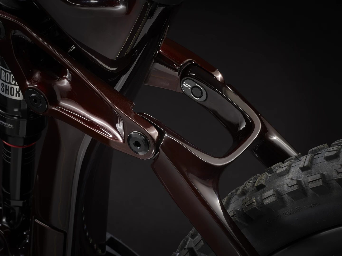 Fine tune head tube angle by 1/2° and BB height by up to 10mm with the simple turn of a nut. Just flip the link to choose between slack or slacker geometry, without negatively affecting suspension performance. A Trek exclusive.